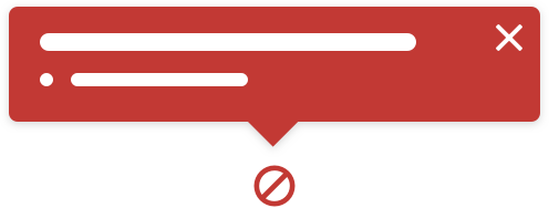 In error scenarios, a red alert icon is displayed to the left of the action buttons (typically Save and Cancel). The popover is also red and appears above the icon. An error popover is displayed in conjunction with one or more field level error messages. This is more noticeable than an inline message but still doesn’t block other components. Show error popovers by default (after user submits the form, if there are errors). In case of multiple errors, the body text can be a bulleted list.